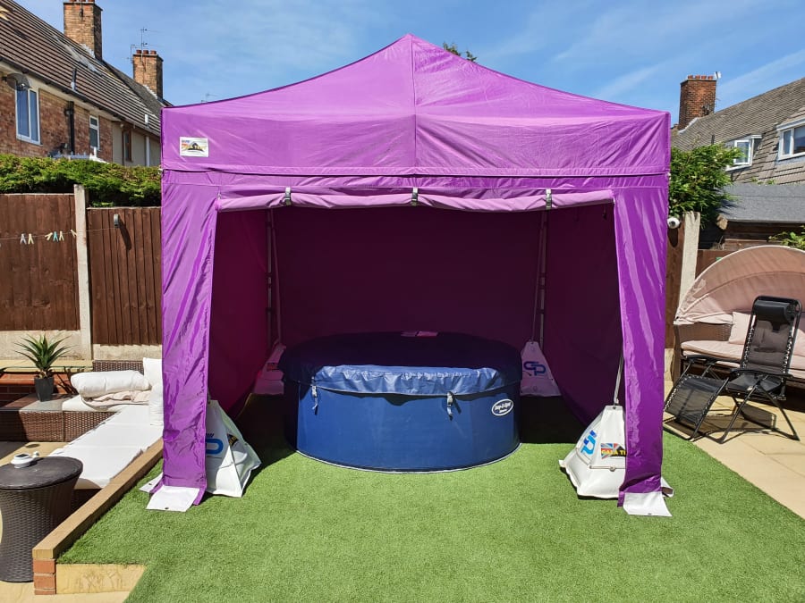 Monaco Lay Z Spa 6 to 8 persons 4 day hire 3 x 3 Industrial Gazebo and sides included, various colours available to choose from Taupe, Lilac, Blue.